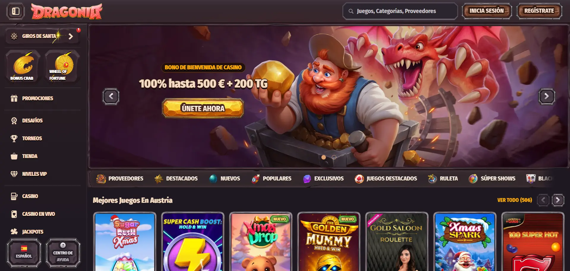 Dragonia Casino combina entretenimiento con un sistema de recompensas excepcional. Pertenece al grupo NovaForge y opera bajo licencia de Anjouan desde 2025. El sitio ofrece más de 10.000 juegos de 90+ proveedores incluyendo Evolution, Pragmatic Play y Playtech.